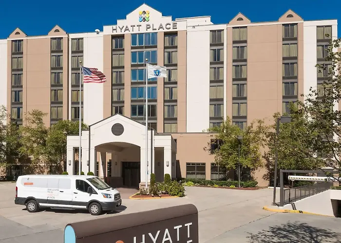 Hyatt Place Boston - Medford, a 3-star hotel with a rating of 7.8/10 on Booking.com, features an indoor swimming pool, a fitness center, and complimentary shuttle service to nearby transport stations. Guests can enjoy a hot breakfast buffet and access to modern dining options available 24/7.