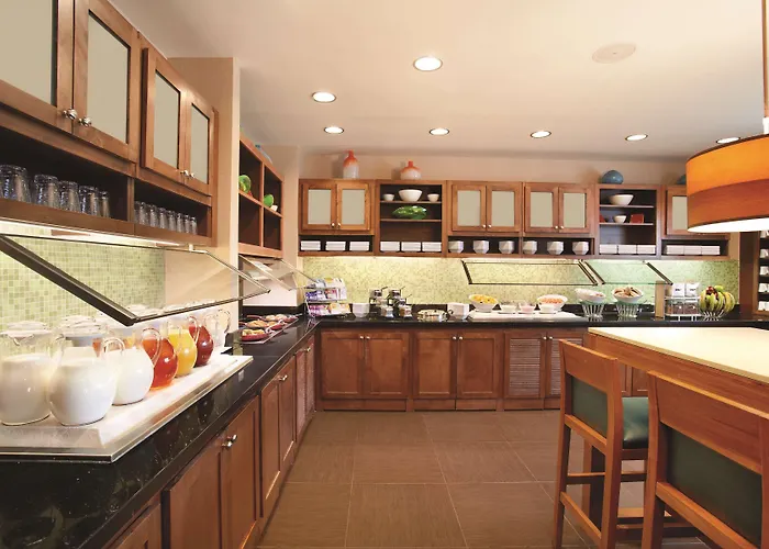 The hotel provides a breakfast bar serving options such as fresh fruit, yogurt, and a variety of hot selections. Dining options include The Placery, offering a thoughtfully sourced menu, as well as convenience with a coffee and wine café for casual snacks.