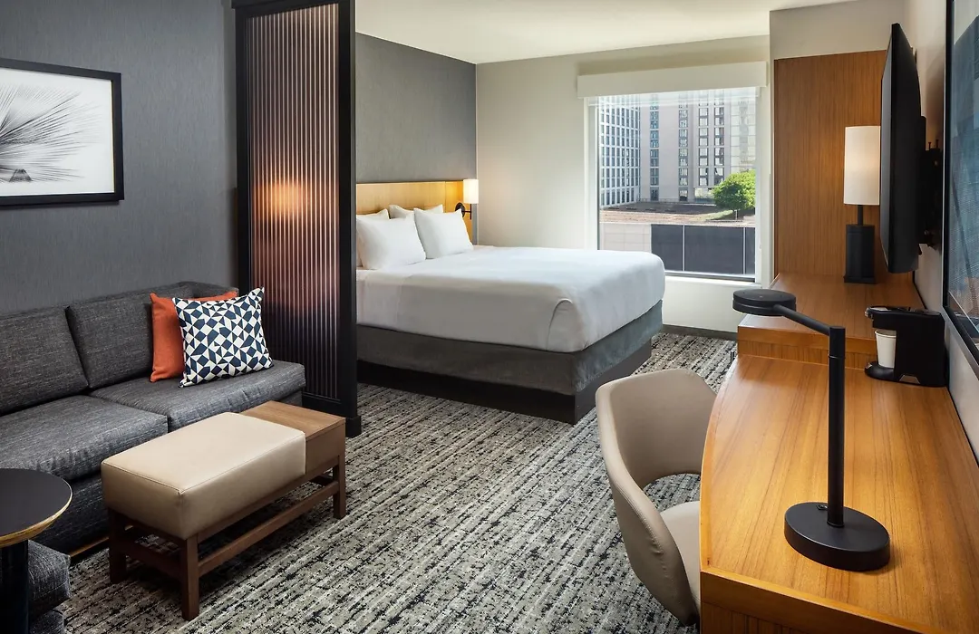 Each room at Hyatt Place includes a 42-inch flat-screen cable TV, a refrigerator, and a sofa bed, catering to individual and family needs. Guests can enjoy a complimentary buffet breakfast on weekdays and access to laptop-compatible workspaces and premium bedding.