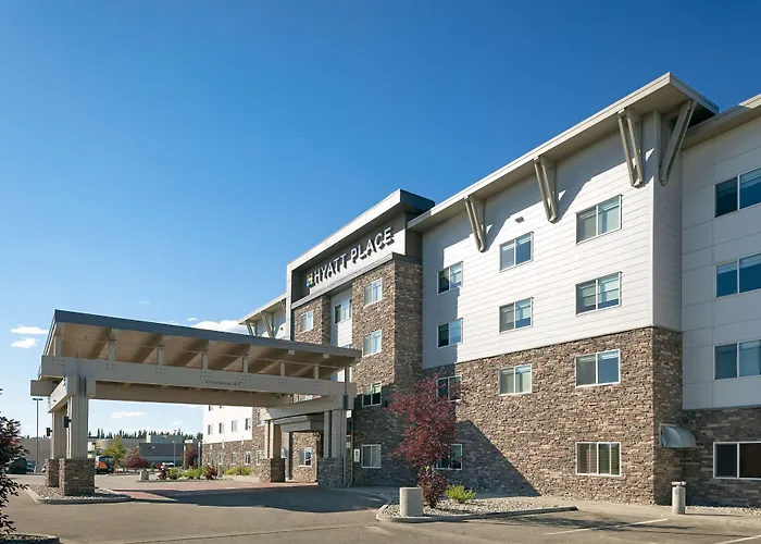 Hyatt Place Fairbanks is a modern 3-star hotel with an 8.2/10 rating. It features an indoor pool, fitness center, free WiFi, and air-conditioned rooms that include laptop-friendly workspaces. Guests can benefit from its proximity to shopping and dining options.