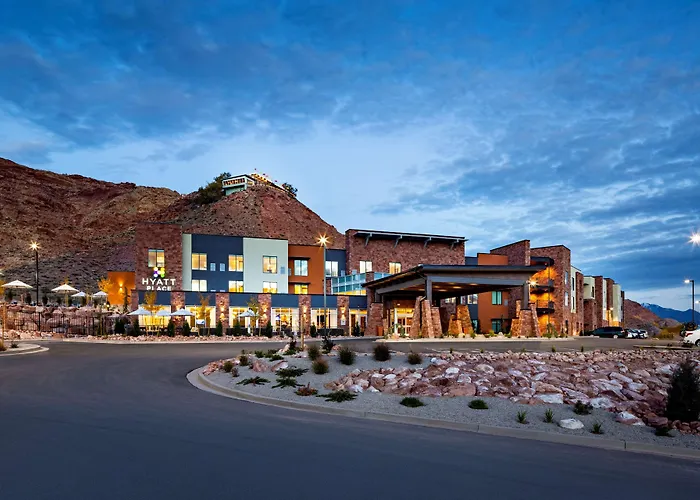 Hyatt Place Moab features 126 guest rooms and offers 3-star accommodation with a seasonal outdoor swimming pool, free private parking, and a fitness center. Guests can enjoy American cuisine at the on-site restaurant and various activities such as hiking in the surrounding area.