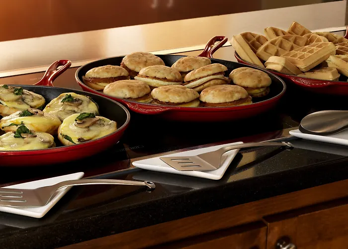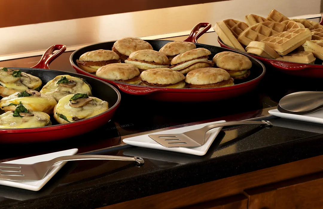 Dining options include a coffee shop/café serving freshly prepared bar bites and shareables featuring premium ingredients. A complimentary breakfast buffet with hot items is available each morning, and numerous restaurants, such as Eataly and Izakaya Mew, are within walking distance.