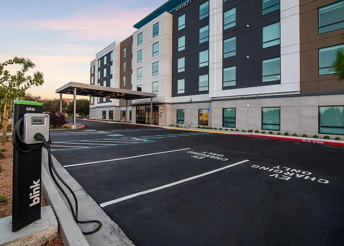 Hyatt Place Newark-Silicon Valley, rated 8.6/10 on Booking.com, features a 3-star accommodation with an indoor pool, fitness center, and free private parking. The hotel provides modern amenities including free WiFi and a 24-hour front desk.