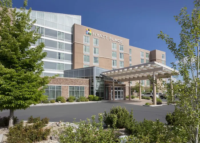 Hyatt Place Reno/Tahoe Airport is a 3-star hotel rated 8.2/10 on Booking.com, featuring an indoor pool, fitness center, and a complimentary airport shuttle. This family-friendly and business-friendly hotel offers free WiFi throughout the property and a 24-hour Grab & Go Cafe with fresh meals.