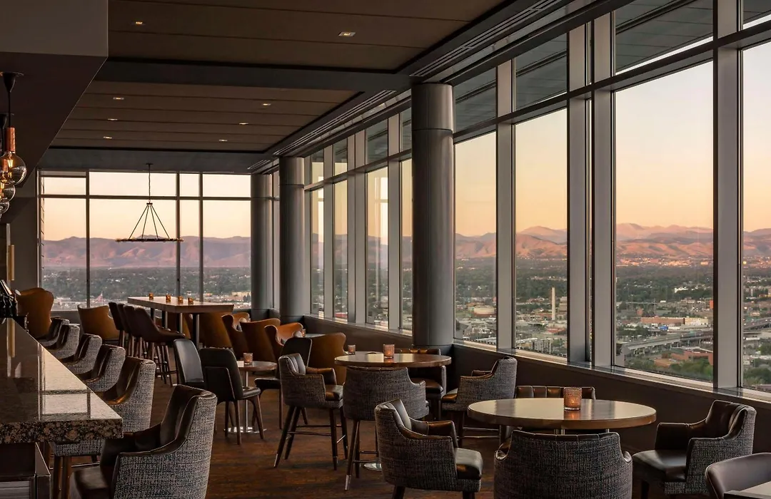 Dining options include Former Saint Kitchen + Bar for meals throughout the day and Assembly Hall Bar + Market for grab-and-go items. Guests may also enjoy cocktails and stunning views at Peaks Lounge, the highest lounge in Denver.