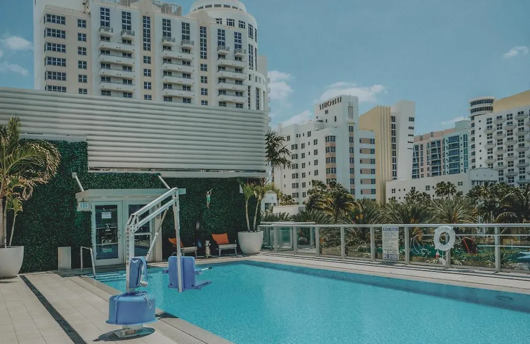 The rooftop pool provides a relaxing space to unwind and take in views of Collins Avenue. Additional leisure options include convenient access to a private beach area with complimentary lounge chairs and towels for guests.