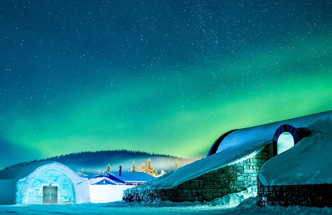 Outdoor winter activities include husky sledding, snowmobile tours, and ice sculpting, which allow guests to immerse themselves in the Arctic wilderness. In summer, activities shift to fishing and river rafting on the Torne River, providing adventure year-round.
