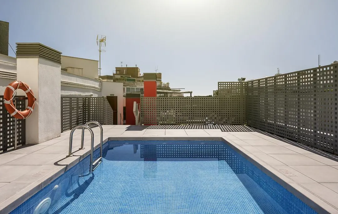 Leisure amenities feature a seventh-floor rooftop pool and a gym equipped with cardiovascular equipment. A range of parks and cultural sites are within easy reach, including the iconic Arc de Triomf and Sagrada Familia, along with direct access to public transport.