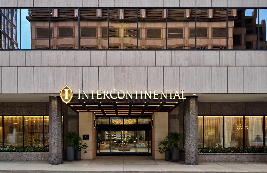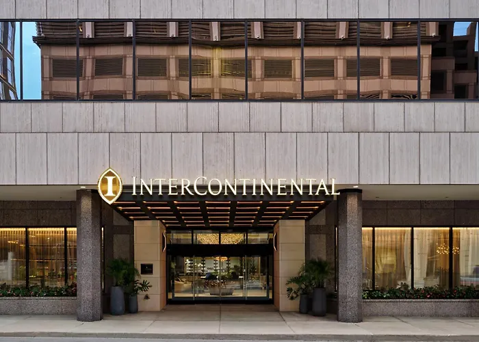 Leisure amenities at Intercontinental include a rooftop pool and spa offering massage treatments. The hotel features a large fitness center and ample meeting space totaling 44000 square feet for business needs. Concierge services enhance the guest experience.