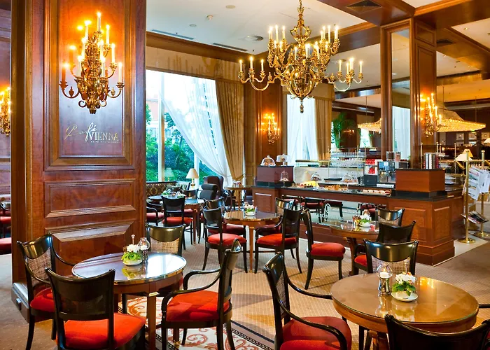 Dining options include the Parlor Restaurant serving local and international dishes and Café Vienna offering traditional coffee specialties alongside pastries. The Intermezzo Bar provides cocktails and late-night bar food, making it a suitable spot for evening relaxation.