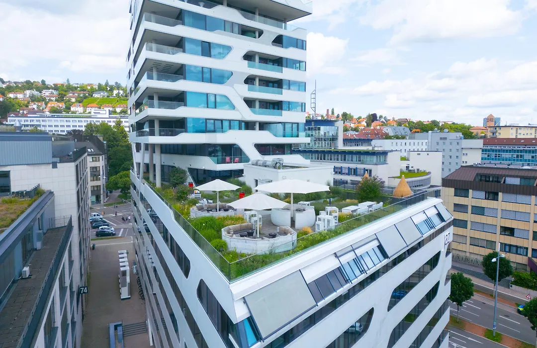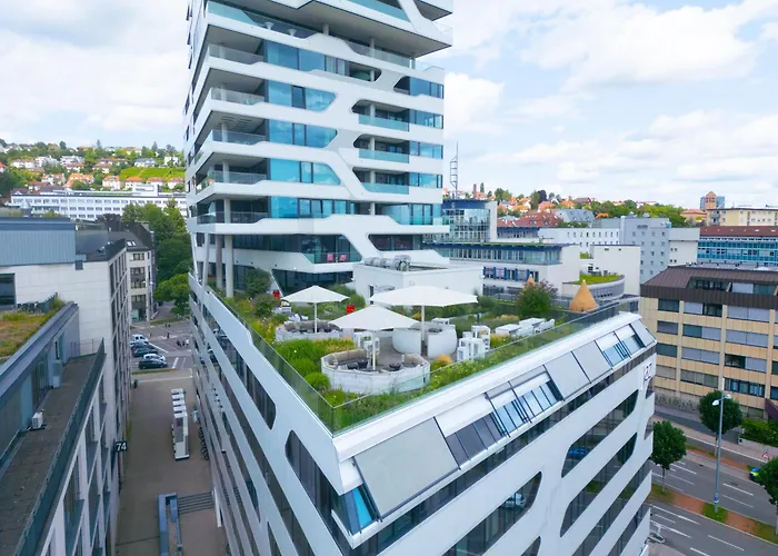 Jaz In The City Stuttgart, a 4-star casual design hotel, features vibrant interior spaces that reflect the cultural spirit of the area. It offers amenities such as a rooftop bar with stunning views, a wellness area with saunas, and spacious accommodations designed for comfort.