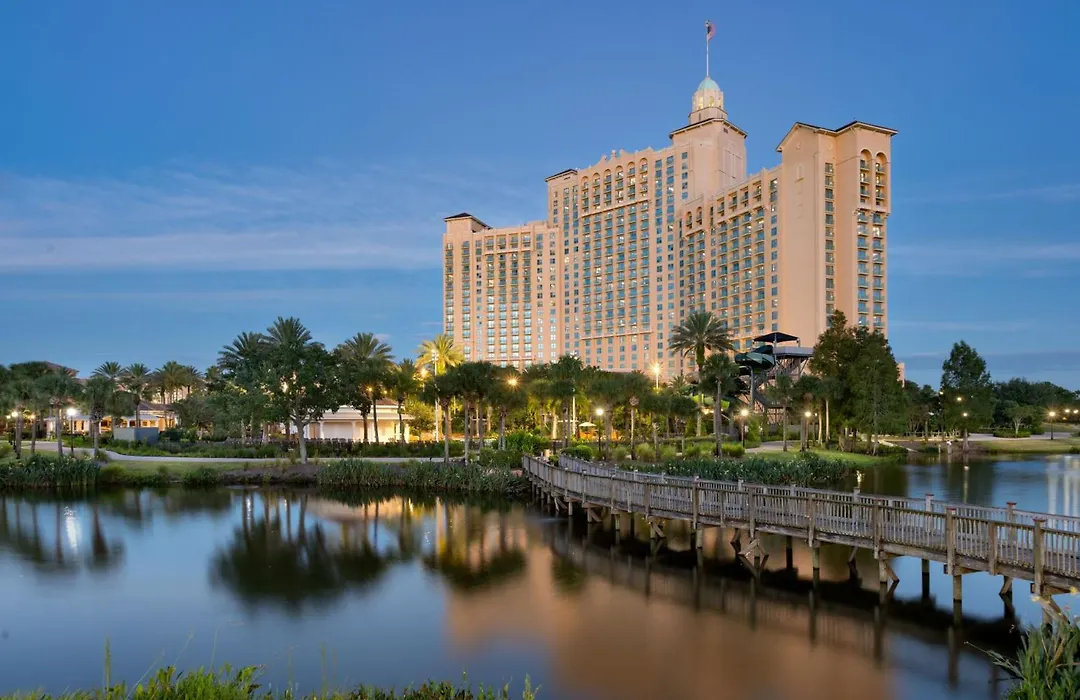 JW Marriott Orlando Grande Lakes offers a luxurious experience amid lush, 500-acre grounds, featuring a family-friendly atmosphere and a 5-star rating with an 8.8/10 from Booking.com. Amenities include a world-class waterpark, a full-service spa, and multiple dining options showcasing local and organic fare.
