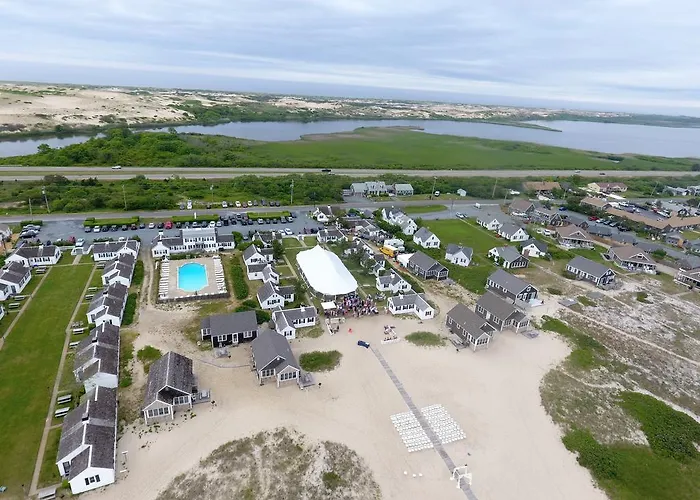 Kalmar Village & Tradewinds is a beachfront North Truro hotel with shingled-sided cottages spread across six acres of oceanfront land, providing access to a 400-foot private beach and a sparkling in-ground swimming pool. The 3-star property features accommodations ranging from one-room efficiencies to spacious two- and three-room cottages, ideal for families and couples seeking a relaxing getaway.