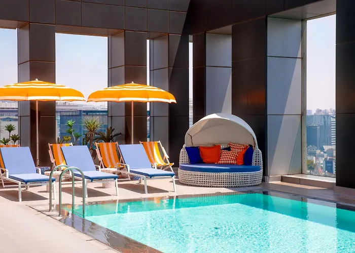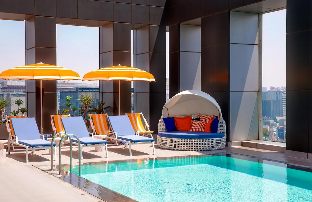 L7 Hongdae By Lotte Hotels, rated 8.5/10 on Booking.com, offers a vibrant experience in a youthful district filled with cultural events. This 4-star hotel features a rooftop pool and bar, trendy dining options, and engaging communal spaces.