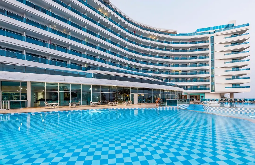 Leisure facilities include six interconnected pools, adult-only areas, and a children's pool with interactive games. The kid's club offers supervised activities, while the hotel grounds feature playgrounds and tennis courts.