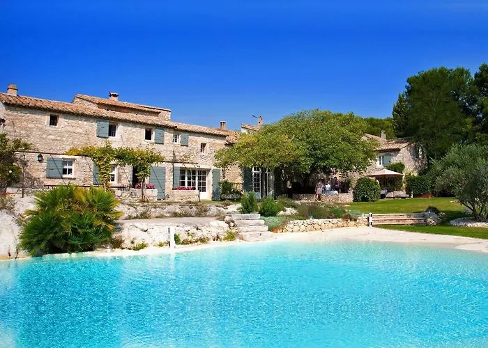 Le Mas De La Rose - Teritoria, rated 9.8/10 on Booking.com, welcomes guests into a 74 acre park planted with pine trees, olive trees, and lavender. This 3-star Orgon hotel features an outdoor pool, a gourmet restaurant, and various leisure activities, making it a family-friendly and pet-friendly establishment.