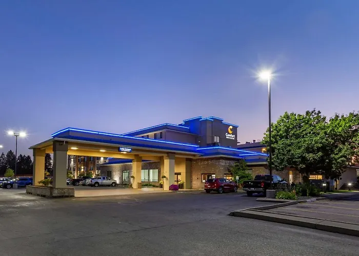 The nearest airport, Spokane International Airport, is 40 miles from the hotel. Mainstay Suites is also pet-friendly, catering to guests traveling with pets.