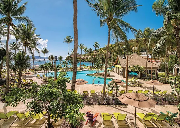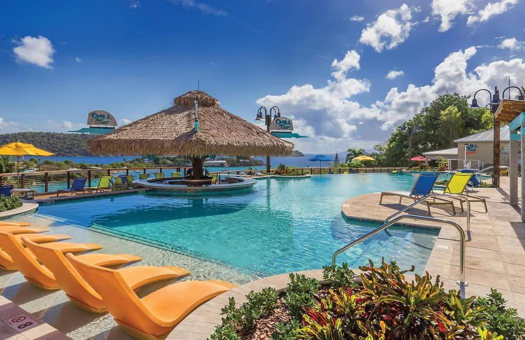 Margaritaville Vacation Club - St Thomas offers beachfront accommodations with a 4-star rating. Amenities include two outdoor swimming pools, a fitness center, and various dining options. This Frydendal hotel provides complimentary WiFi and concierge services.