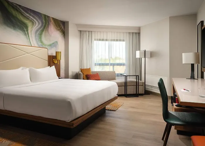 Accommodations at Fort Collins Marriott include guest rooms with hardwood floors and contemporary decor inspired by the surrounding landscape. Premium bedding sets and This Works bath and body collection enhance the comfort of each room.
