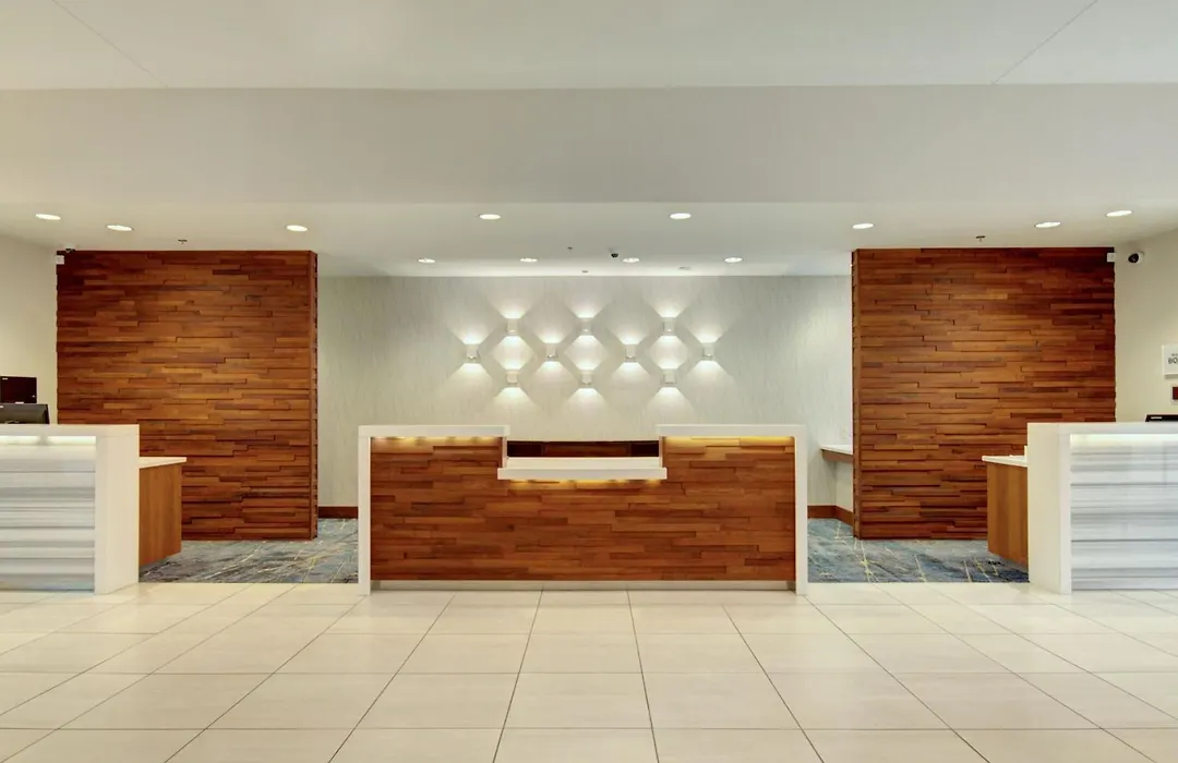 Rooms at the Tulsa Marriott Southern Hills are well-appointed, featuring spacious floor plans, modern amenities, work desks, wood floors, back-lit bath mirrors, tiled showers, and complimentary high-speed Wi-Fi. Each room includes a 37-inch flat-screen TV with a jack pack for easy laptop connection. The hotel provides custom-made beds and a This Works bath and body collection.