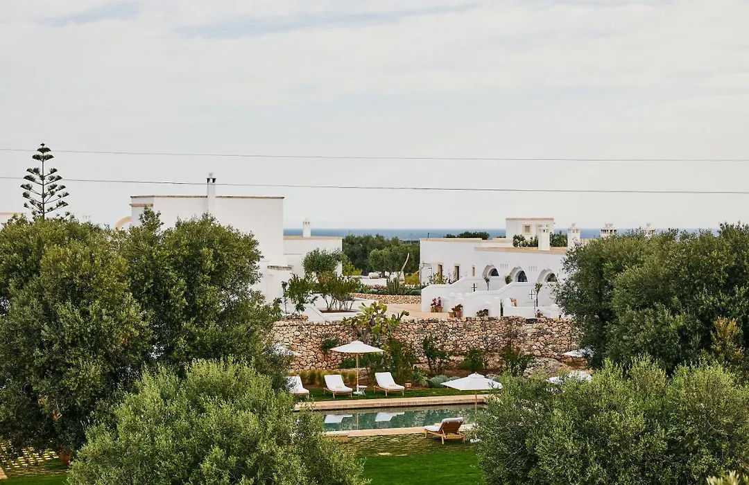Dining at Masseria Calderisi includes a sophisticated restaurant, La Corte, serving contemporary Puglian cuisine, with many ingredients sourced from local farms. Guests can enjoy meals in various settings, including candlelit tables in the olive groves or on private terraces.