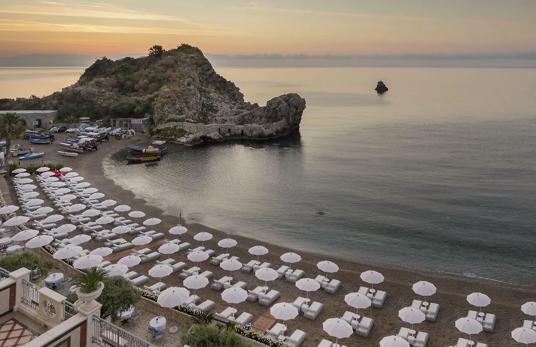 Mazzarò Sea Palace - The Leading Hotels Of The World, a 5-star Taormina hotel, features a wellness centre, sea-view pools, and a private beach. Guests can enjoy a lavish breakfast spread and various recreational amenities.