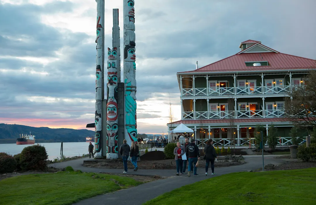 Dining options include the McMenamins pub, which serves house-roasted coffee and a variety of Northwest-style pub fare, including the King Kalama burger. The Cloud Bar on the upper floor offers expansive views of the river along with cocktails and a light menu.