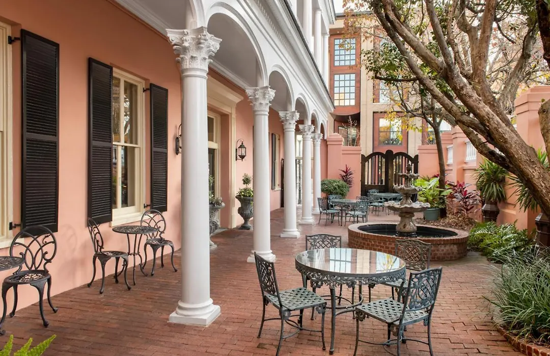 Guests can relax in the peaceful courtyard, featuring lush gardens and a jacuzzi. The downtown area provides access to historic sites such as Rainbow Row and the Charleston Museum, allowing for convenient exploration of local culture and attractions.