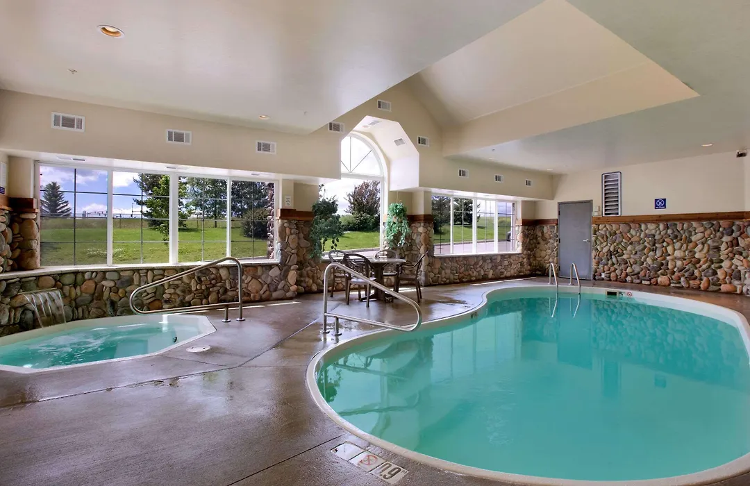 Recreational amenities include a heated indoor pool and hot tub, ideal for relaxation after outdoor activities such as skiing at Bridger Bowl or golfing at Bridger Creek Golf Course. Guests can explore the nearby Museum of the Rockies for local history.