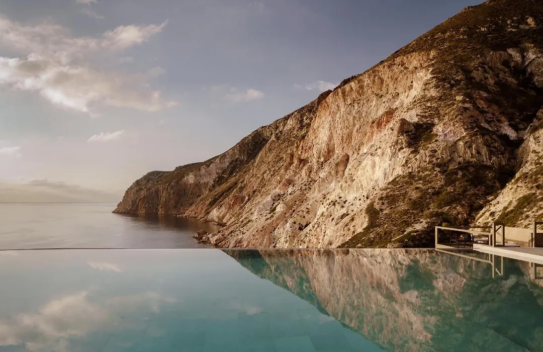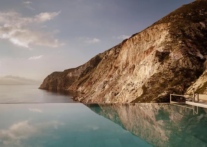 Milos Cove Inception Resort, a 5-star luxury hotel rated 9.0/10 on Booking.com, offers elegant suites and villas with private pools alongside stunning views of the Aegean Sea. Exceptional amenities include a Mediterranean restaurant, a spa, and a private beach, creating an exclusive escape for guests.