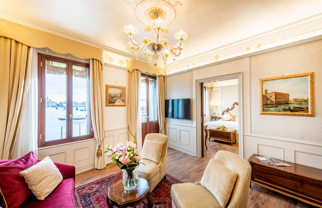 Leisure amenities include a relaxing rooftop terrace with views of the surrounding canals and Basilica della Salute. The hotel also hosts events in its historic reception rooms, accommodating up to 250 guests. An attentive staff is dedicated to personalizing events for guests.