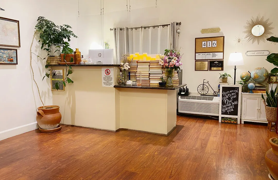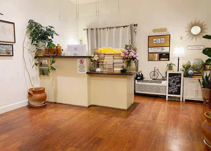 Guests can start their day with a complimentary daily continental breakfast that includes coffee, tea, and cereal. The hotel is also within walking distance of local dining options such as Wild Thyme Deli and Cafe, where fresh salads and sandwiches are available.
