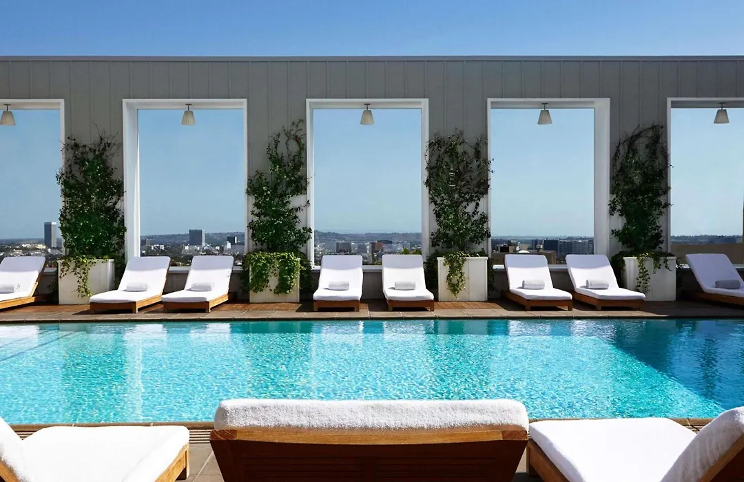 Mondrian Los Angeles, a 4-star hotel with a 7.5/10 rating, features a stylish rooftop pool and trendy Skybar, known for its vibrant social scene in West Hollywood. Guests enjoy modern accommodations designed with unique furnishings and thoughtful details.