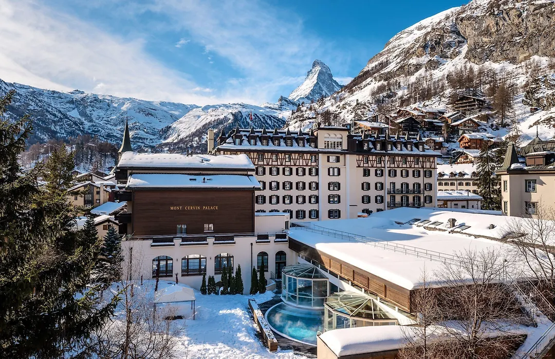 Mont Cervin Palace, a 5-star Zermatt hotel rated 8.6/10 on Booking.com, features a 1700 m2 spa area, a kids club for youngsters, and multiple dining options including raclette and fondue specialties. Its proximity to notable attractions such as the Matterhorn Museum and Gorner Gorge enhances its appeal.