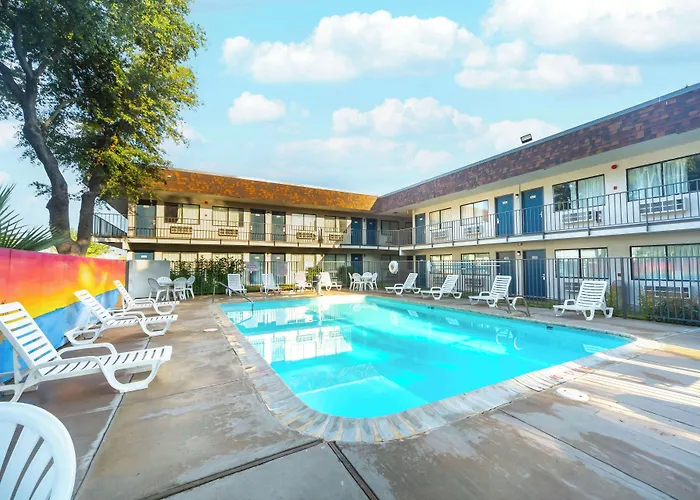 Motel 6-Del Rio, Tx is a 3-star hotel rated 8.2/10 on Booking.com, offering modern rooms and a year-round outdoor pool. Additional amenities include free Wi-Fi and a snack bar/deli.