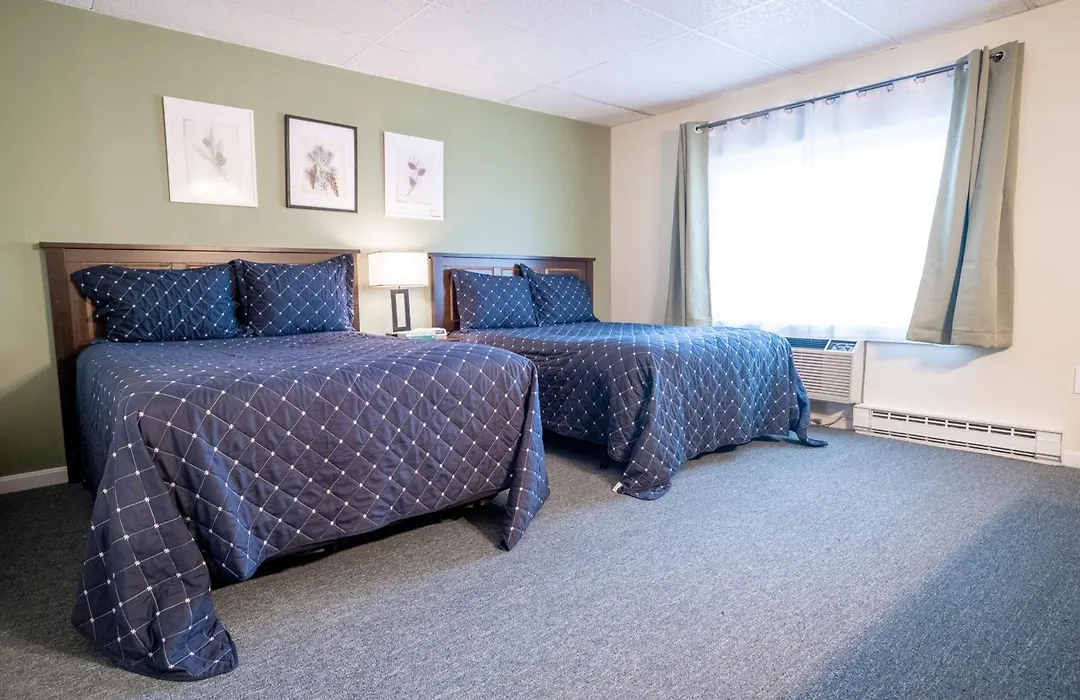 Rooms at Acadia Pines Motel include amenities such as private bathrooms, air conditioning, satellite TV, microwaves, and refrigerators. The motel features options like a two-room family unit, which has a king bed and a queen bed, as well as economy queen rooms. Various bed configurations cater to different guest needs.