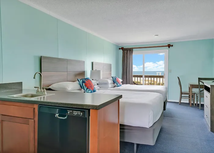 Admiral'S Quarters offers oceanfront views, outdoor pool access, and a tranquil setting for beachgoers. This Kure Beach hotel features air-conditioned rooms with private balconies and kitchen facilities, ideal for self-catering. It is a 7.7/10 rated accommodation.