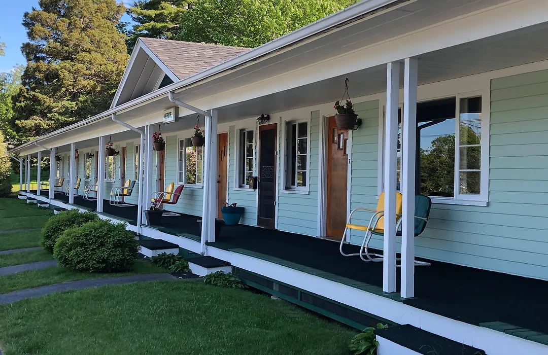 Rooms at Edenbrook Motel are located in four buildings arranged on a hillside, providing spacious layouts with private bathrooms, air conditioning, cable TV, and convenient near-door parking. Twenty of these rooms include balconies, with five offering views of Frenchman's Bay.