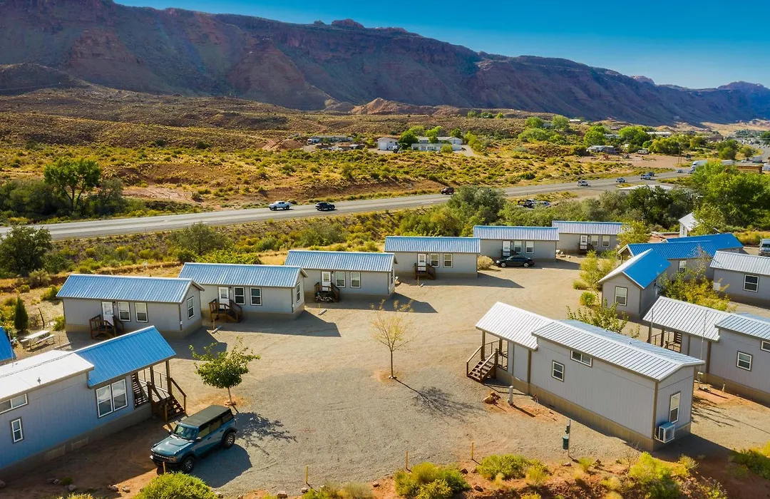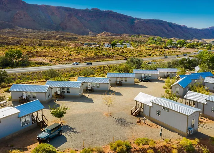 Htr Moab, rated 8.5/10 on Booking.com, offers various accommodation options including holiday homes and tents with private entrances in Moab. The property features free WiFi and is designed for guests seeking outdoor adventure and exploration.