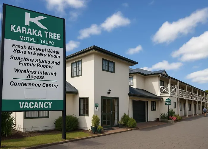 Karaka Tree Motel, a 4-star Taupo hotel, features a family-friendly environment with spacious accommodations and geothermal spa baths. Amenities include guest laundry, free on-site parking, and convenient access to various local attractions.