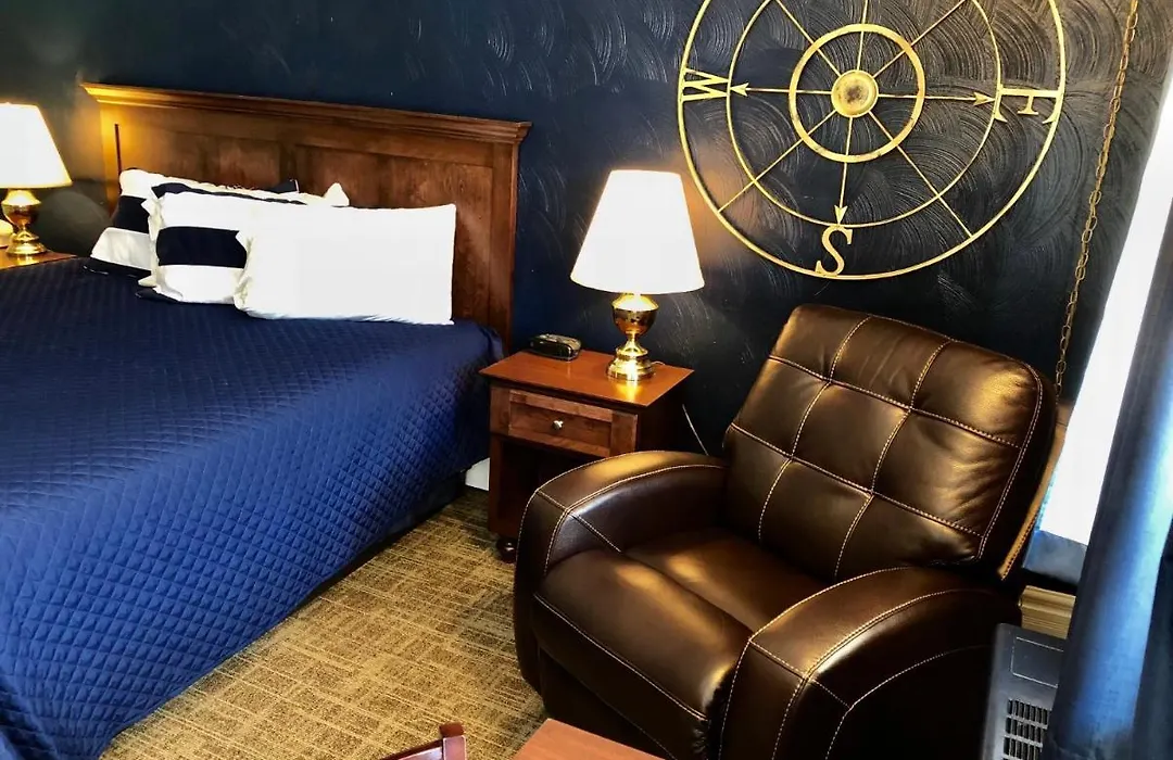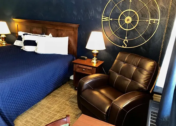 The motel offers a complimentary self-serve breakfast to start your day. Nearby dining options include Zak's Kandy Haus and Freighters Restaurant, both within 0.5 miles.
