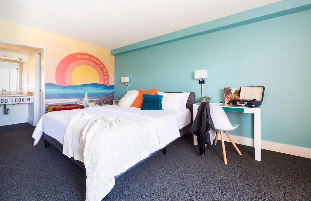 Rambler Motel features leisure facilities, including a swimming pool with fire pits and a retro arcade for entertainment. The outdoor area is suitable for families to unwind after a day of activities.