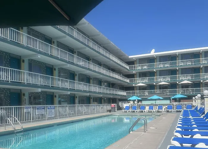 The motel is situated just 820 ft from the beach and the boardwalk, offering access to local attractions like Seaport Aquarium and Ocean Oasis Waterpark. The Wildwood Bus Terminal is approximately a 17-minute walk away, connecting guests to further activities in the area.