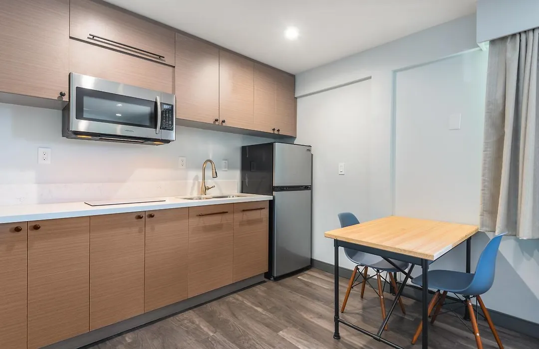 Solo Motel Broadway offers a range of room options including single king beds and double queen beds, each equipped with a mini-fridge, a flat-screen TV with DirecTV, and memory foam beds. Rooms also feature walk-in showers, LED lighting, and work desks to accommodate both leisure and business travelers.