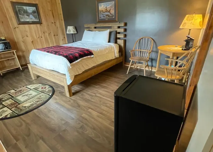 The motel provides a communal gathering space and a shared kitchen for guest use. Nearby options for dining include local eateries, with ski resorts and golf courses available for outdoor dining experiences.