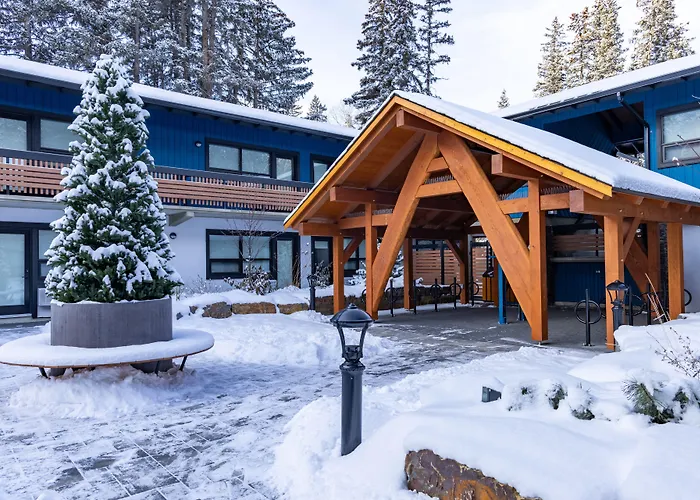 Leisure activities include hiking and skiing, with Upper Hot Springs and Sunshine Village nearby. The hotel features a terrace for guests to enjoy the surrounding nature and views of Cascade Mountain.