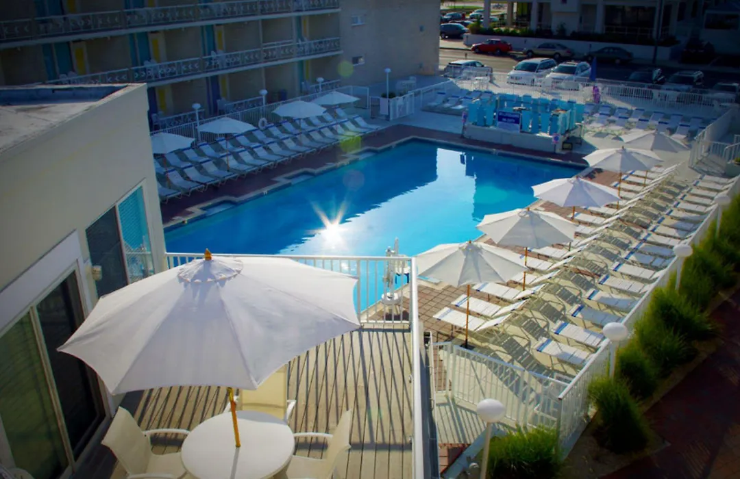 The Jolly Roger Motel is a 3-star Wildwood Crest hotel with an 8.8/10 Booking.com rating, featuring a large pool area and casual on-site dining. Family-friendly accommodations include spacious two-bedroom suites and unique activity areas for children.