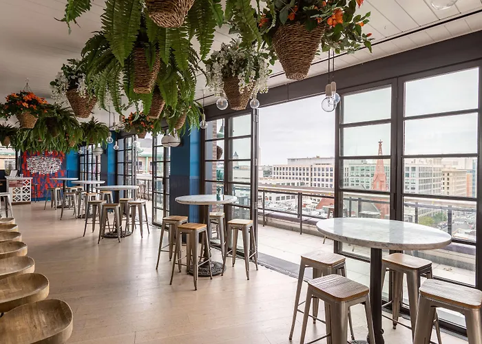 Dining options include the Southern-focused Crimson Diner, serving popular dishes like fried chicken sandwiches. A rooftop bar, Crimson View, provides clear vistas of the Washington Monument. Guests can also find pastries served by Blanchard's Coffee Roasting Company in the morning.
