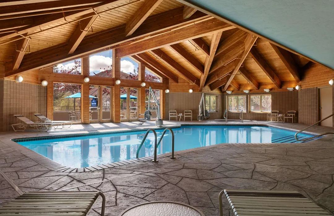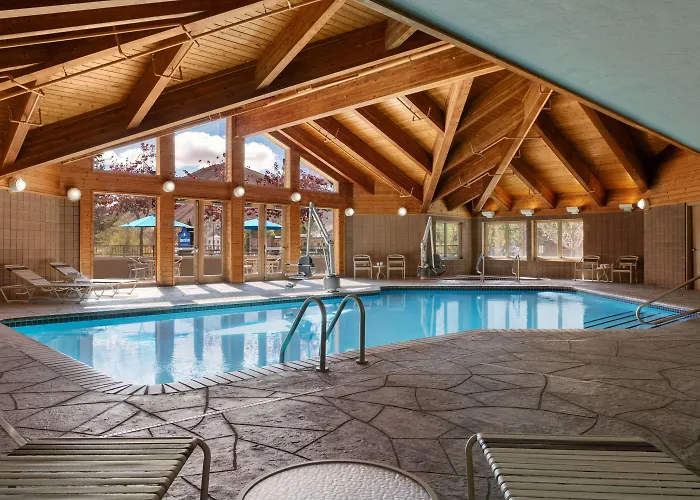 Recreational amenities include an indoor pool, hot tub, and steam room. The hotel is also close to various outdoor activities such as snowmobiling and snowshoeing, with nearby landmarks including Blaine County Historical Museum and Rotarun Ski Area.