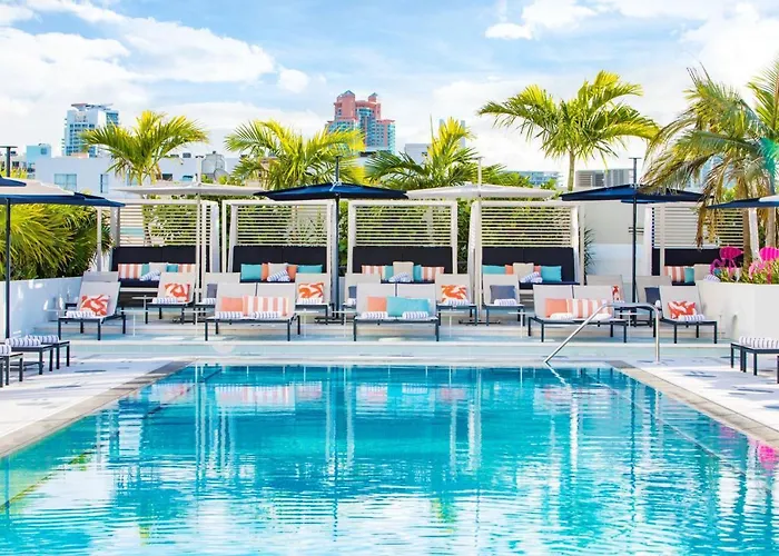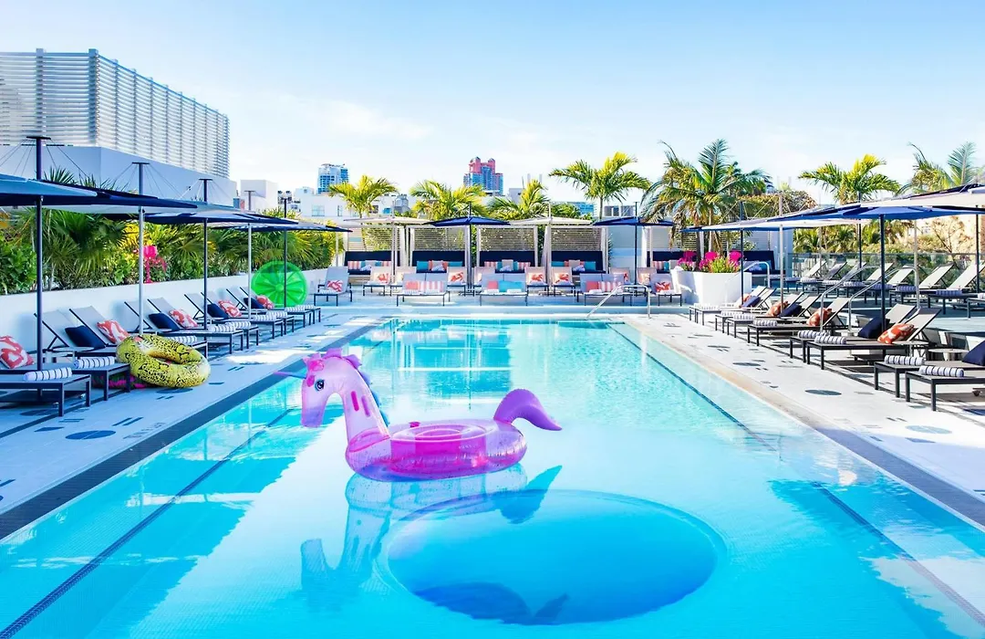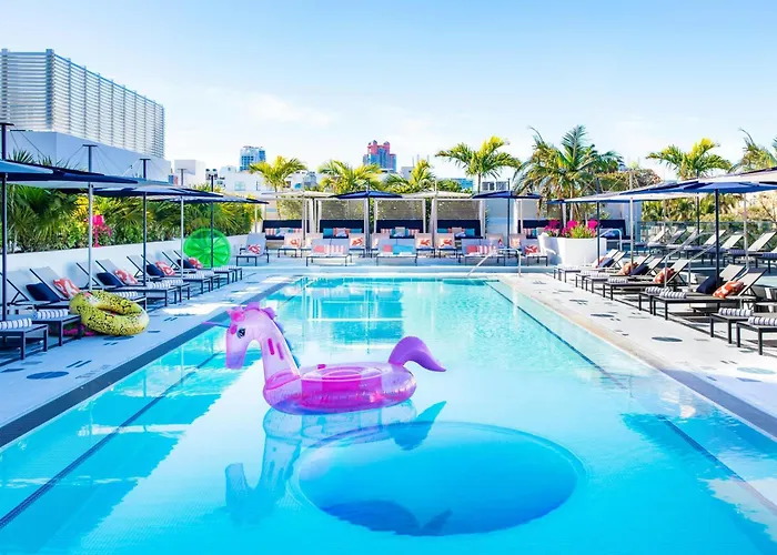 Moxy Miami South Beach blends modern design with vibrant dining options, featuring a rooftop bar and beach access. This 4-star Miami Beach hotel offers amenities such as a 72-foot pool and a 24/7 fitness center, alongside spaces dedicated to events and social gatherings.